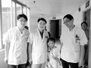 图为江永强与经他诊治并即将康复出院的小患者合影。