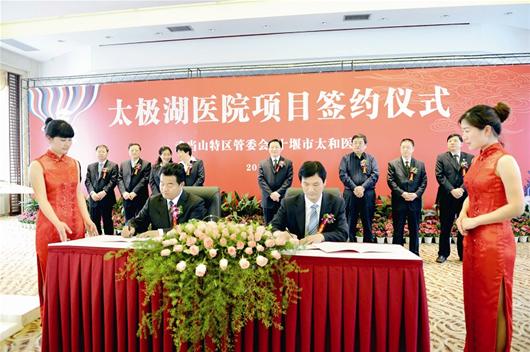 图为:与国际接轨的中国高端养生院太极湖医院建设项目启动。