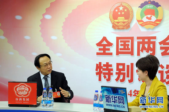 2014年3月9日,全国政协委员、石家庄以岭药业股份有限公司董事长吴以岭做客新华网2014全国两会特别访谈,就其创立的五位一体发展模式和如何发展大健康产业等议题与网友在线交流。新华网 贾振 摄