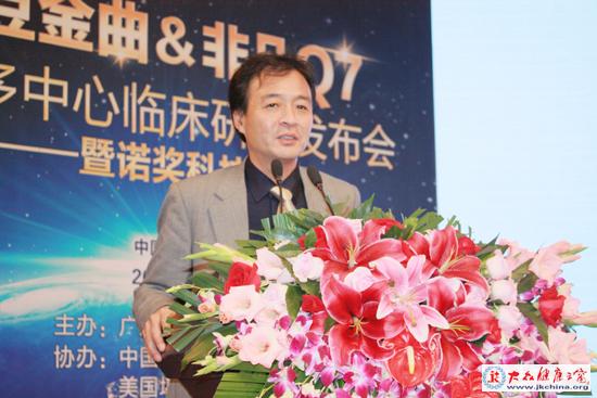 大众健康之窗9月12日北京讯 由广东双骏生物科技有限公司主办,中国医药质量管理协会、沈阳药科大学等多家机构支持的“宝豆金曲&非凡Q7国际多中心临床研究发布会暨诺奖科技论坛”在北京梅地亚中心隆重举行。论坛由北京大学药学院原副院长李长龄教授主持。来自美国哈佛大学、台湾大学、北京大学、沈阳药科大学等国内外的医学界知名专家学者、企业代表及相关媒体等400多人出席会议,一同交流行业信息及分享科研成果。图为台湾大学陈志祥教授作《纳豆激酶吸收》主题发言。