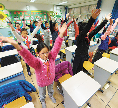 12月1日,北京一家小学将课间操改在室内进行。刘 畅摄(人民视觉)