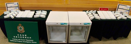 香港海关与卫生署采取联合行动,查获市值约28万元港币的冒牌疫苗(香港海关供图)