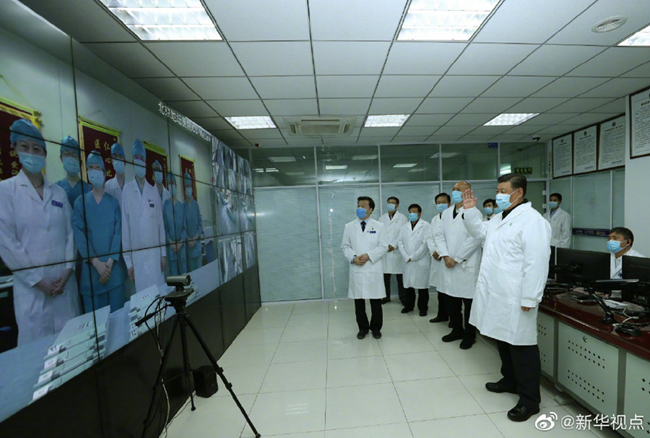 10日下午,习近平来到北京地坛医院,察看新冠肺炎感染者住院诊疗情况,视频连线武汉市重症患者收治医院,听取中央指导组、湖北指挥部有关情况汇报,慰问奋战在一线的医务工作者。随后,习近平前往朝阳区疾病预防控制中心,了解朝阳区开展应急处置、流行病学调查、筛查报告和北京市疫情防控工作情况。(文字记者张晓松 摄影记者鞠鹏、谢环驰、刘彬)