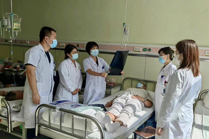 吴云教授(左三)在医院病房查房(受访者供图)