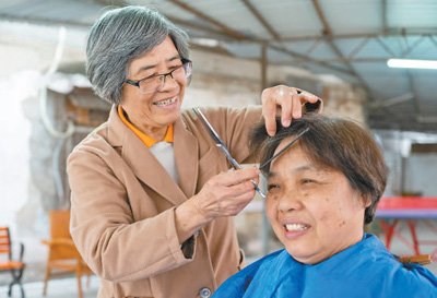 家住广西壮族自治区南宁市兴宁区的广西冶金研究院退休职工陈少群在为该院生活区的老人义务理发。张云河 严立政摄影报道