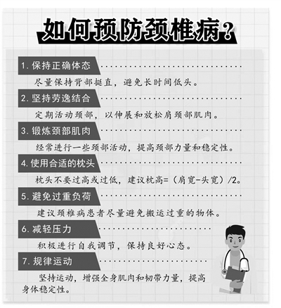 减轻压力。如果长期处于高压状态中,会使颈部肌肉紧绷,进而增加颈椎病的发病风险。当出现紧张等不良情绪时,可以积极进行自我调节。