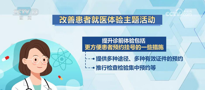 改善患者诊前就医体验,除了多为患者考虑停车难、乘坐电梯拥挤等问题,还有方便患者操作的预约挂号。在采访中不少患者向记者反映,大医院实施了分时段预约挂号后,不用一大早来医院排队,就医体验有了明显改善。国家卫生健康委相关负责人介绍,目前,全国82.7%的二级以上公立医院开展了预约诊疗服务。去年5月,国家卫生健康委启动了为期三年的主题活动,围绕诊前、诊中、诊后也就是看病就医的全流程,提出6个方面20条具体举措。