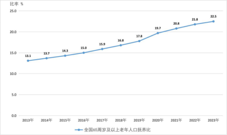 图3 2013年-2023年全国65周岁及以上老年人口抚养比