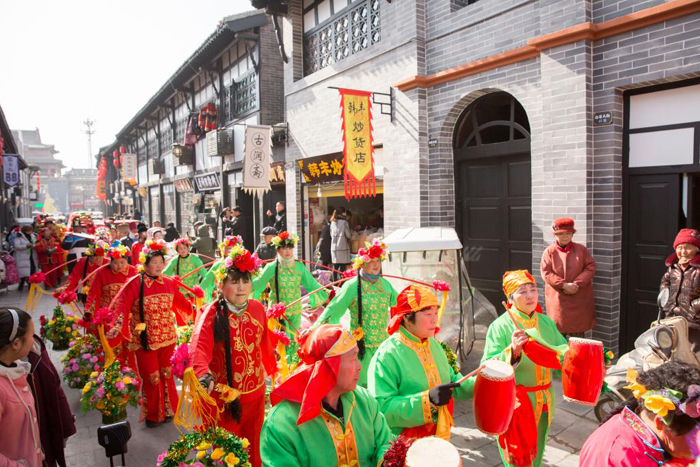 2025年1月30日,亳州北关历史街区,民间艺人在进行民俗表演。新华社发(刘勤利 摄)